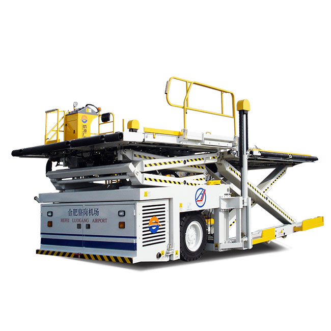 集裝貨物裝載機(內燃機)是一種全液壓轉向、前橋驅動,行駛無級變速的自驅動車輛,該型集裝貨物裝載機最大裝卸重量為7噸,可滿足國內機場現有的所有機型底艙集裝箱、集裝板的裝卸作業(yè),一次可同時裝載集裝板(3175×2438mm)一個,集裝箱(LD-3)兩個。